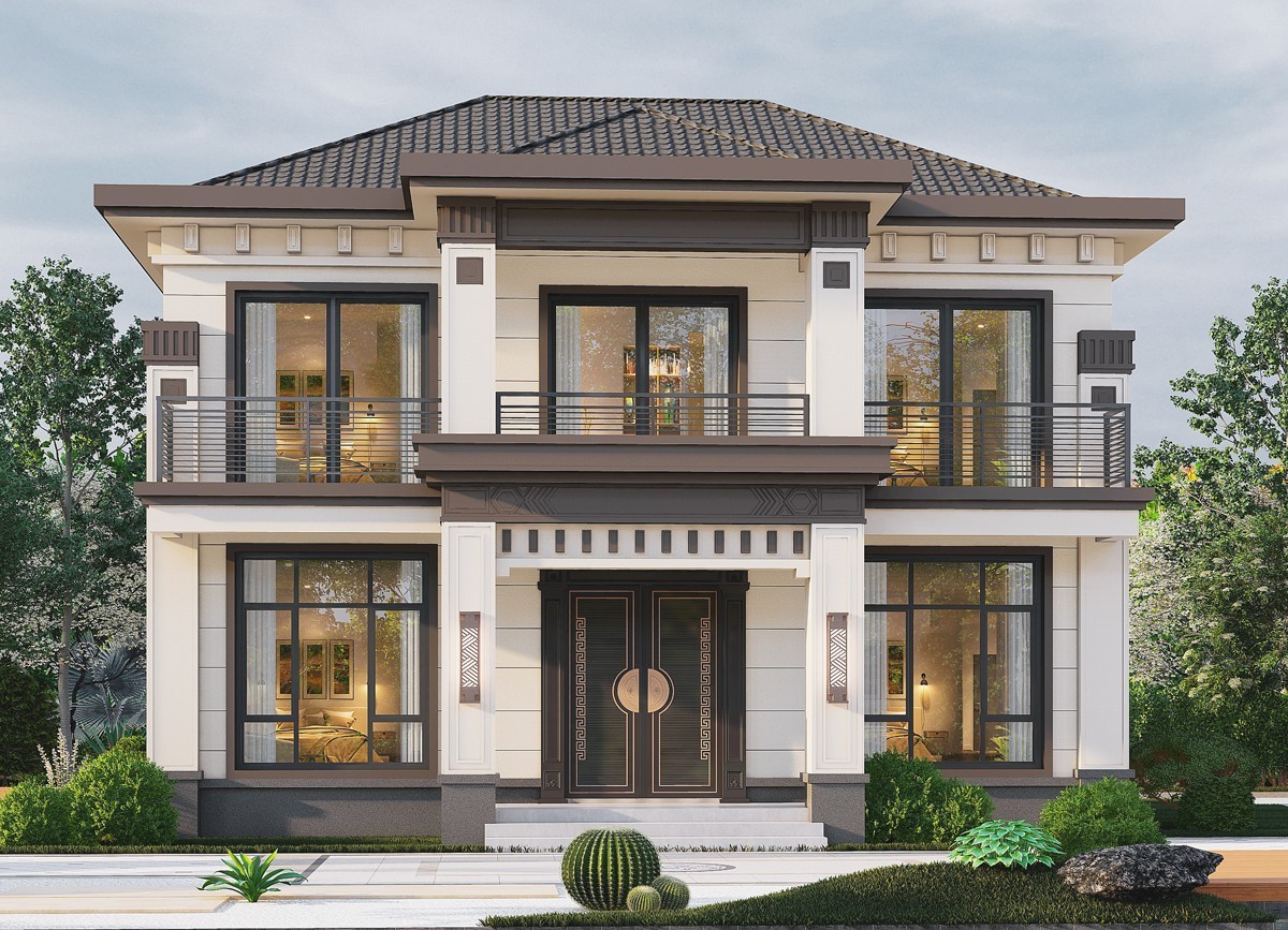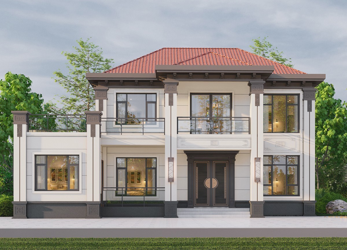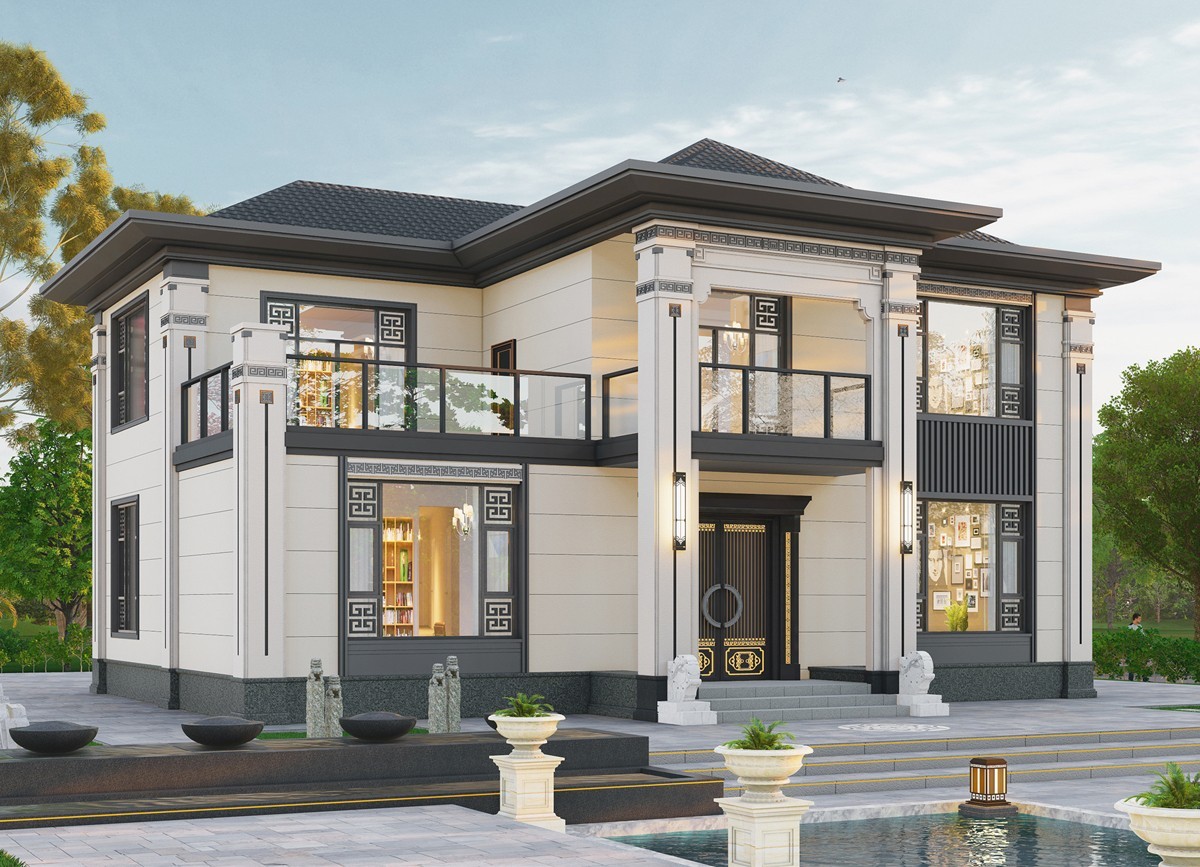 济源005 两层新中式(11.36x11.76米)-【易设计】